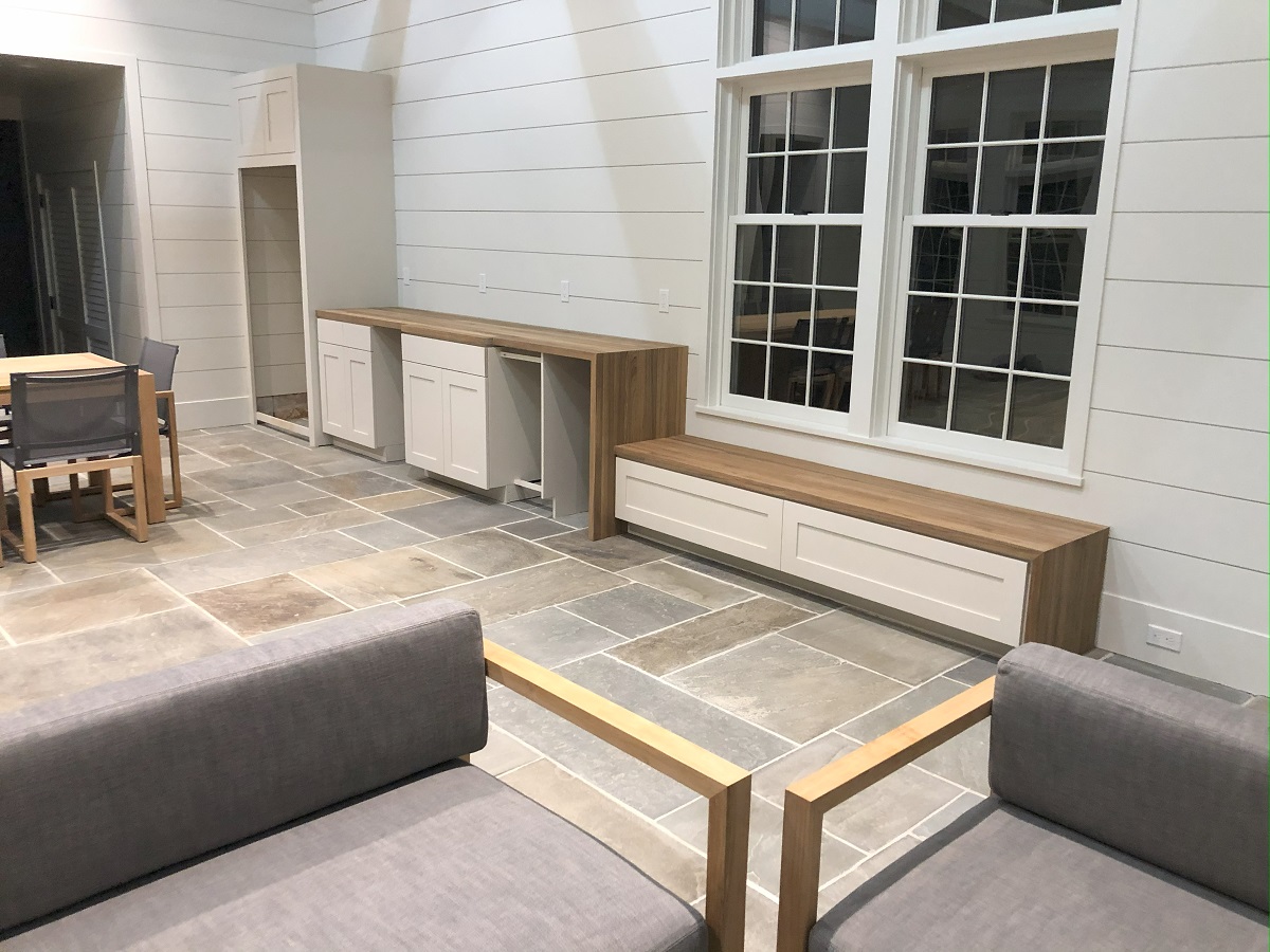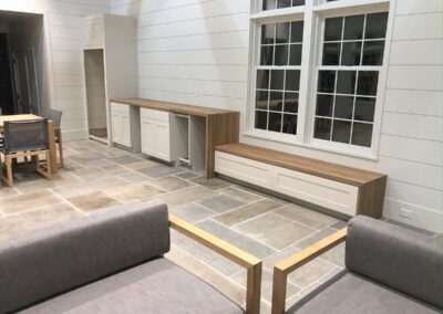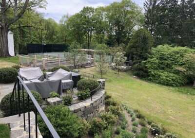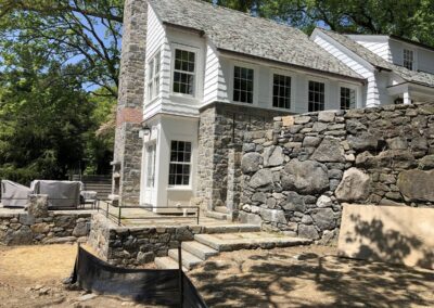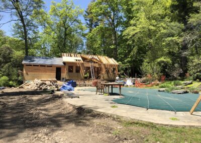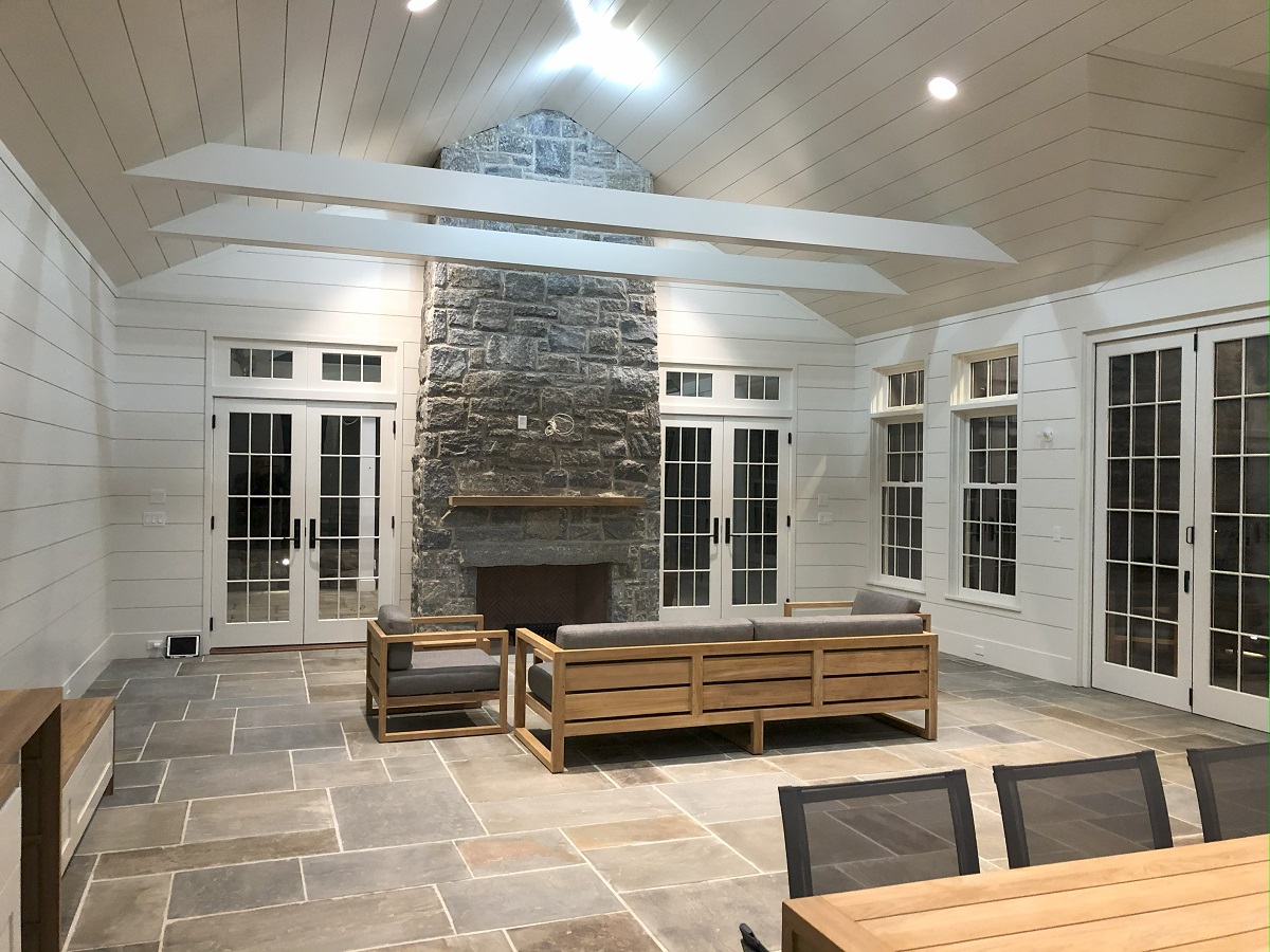 A large project in the heart of Old Greenwich with multiple new structures, an addition and remodel on the main house, and extensive hardscape work. The main house addition included a kitchen, pantry, great room, playroom, and wine room. A new guest house & pool house were also built on the property. The surrounding hardscape work included multiple retaining walls & patios, tennis court, bocce court, pergola, & spa. This project has extensive custom woodwork & metal work throughout and struck a perfect balance between the traditional Old Greenwich style home with some sleek modern details incorporated.